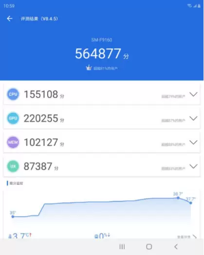 最为值得一提的是,三星Galaxy Z Fold2 5G的性能也足够强悍,它搭载了目前业界拔尖的高通骁龙865 Plus处理器、LPDDR5、UFS 3.1等配置组合。在安兔兔跑分软件上,跑出了高达56万分的优异成绩,可以说,这样强悍的性能足以满足各类用户的所有需求,应用运行起来也十分流畅。