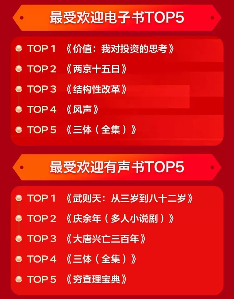 电子书、有声书等新兴阅读方式,凭借便捷性受到更多消费者的青睐,助推京东图书数字阅读成交额同比增长386%,“云阅读”逐渐成为主流阅读习惯。从京东图书最受欢迎电子书榜TOP10中也可以洞察消费者的“云阅读”偏好,文学、哲理类图书最受“云阅读”用户的欢迎。小说在移动阅读领域的高光地位也可以从有声电子书内容榜上得到印证,消费者对历史、科幻题材的小说尤为感兴趣。