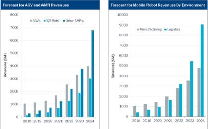 根据国际知名研究机构Interact Analysis的数据显示,AMR增势强劲,在将未来几年内全面超越AGV,其硬件规模将在2024年达到近100亿美元。虽然目前传统导航技术的AGV依旧占据主要市场,但更接近与人的智能水平的移动机器人是应用趋势,这也给人工智能技术应用留下了广阔空间。