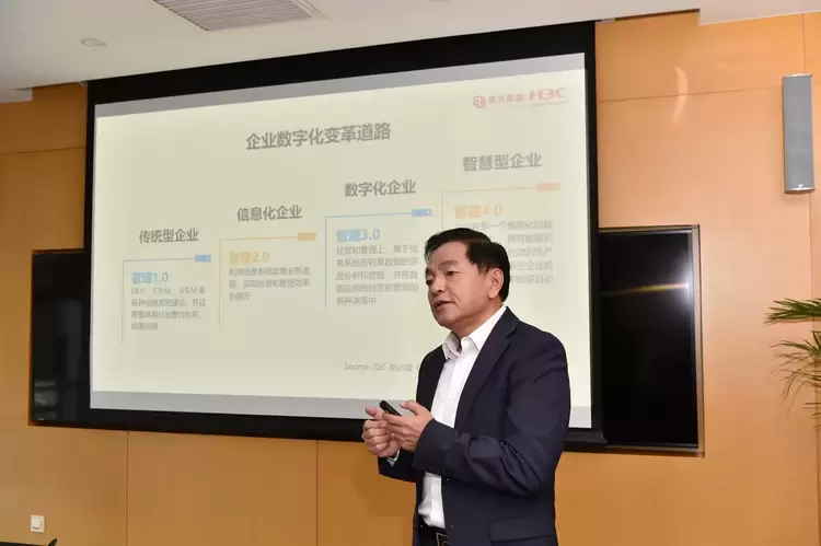 在2016年5月成立时,面对内部业务整合和外部市场竞争的双重挑战,立足自身创新实力推进业务、管理和组织的数字化重塑,成为新华三集团打造核心竞争力的必然选择。在2017年,新华三集团建立了由CEO担任组长、CIO为执行副组长的数字化转型工作组,将数字化转型确立为集团发展的核心战略,在三年时间内,通过推动数字化创新与企业流程、系统和管理的深度融合,实现了“数字大脑计划”在内部的部署和应用,引领自身数字化转型由信息化、数据化迈向智能化的新阶段。