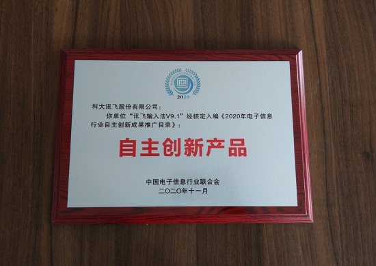 2020年11月12日,由中国电子信息行业联合会、浙江省经济和信息化厅、杭州市人民政府和滨江区人民政府共同主办的“2020(第二十四届)中国国际软件博览会”在杭州拉开序幕。当晚“软件之夜及颁奖盛典”给予自主创新成果企业进行授牌,并颁发“自主创新成果推广目录”。讯飞输入法凭技术先进性、产品创新性、功能独创性,被收录于2020年中国信息行业创新成果目录。