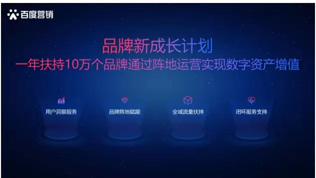 与此同时,百度营销将“品牌新成长计划“进一步夯实,将在1年内扶持10万个品牌通过深度阵地运营实现数字资产的倍速增值。该计划通过用户洞察服务、品牌阵地赋能、全域流量扶持、闭环服务支持四大举措,全面助力企业整合并激活品牌资产,帮助品牌以更低成本获取用户,并通过持续的运营赋能及扶持,提升品牌转化效率。