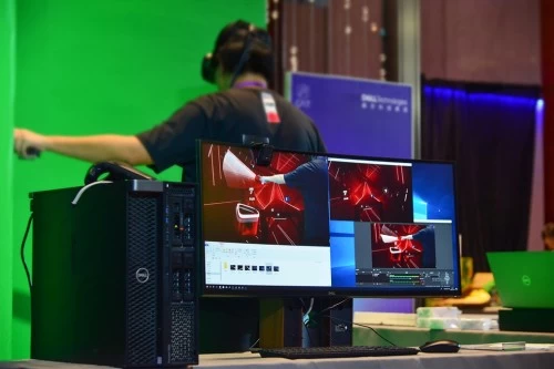 展区内还设有MR混合现实应用体验区,戴尔Precision 5820工作站能够充分进行VR运算并同时实现MIXED Reality,将电脑渲染的虚拟画面与摄像机拍摄的实景画面融合,进而达到虚实结合的效果,MR混合现实广泛应用于广告、科普教育领域。戴尔展区也为观众提供了多款绘画、音乐游戏等娱乐应用,在身临其境的交互体验中,感受戴尔对新文创的助力作用。