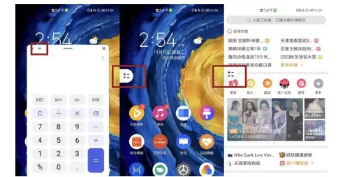 此前,EMUI 10系统下,浮窗任务只能单个打开,及时关闭。本次,EMUI 11带来了新的悬浮球功能,能够让应用暂存在屏幕侧边。