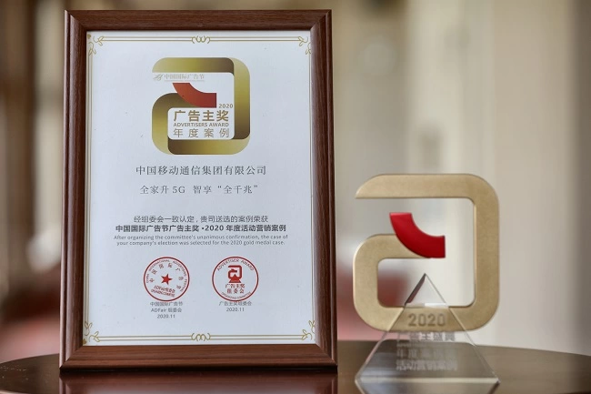 荣耀加冕 中国移动“全家升5G 智想全千兆”传播项目荣获年度活动营销案例金奖