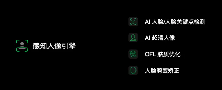 感知人像引擎拥有AI人脸检测、AI超清人像、OFL肤质优化算法、人脸畸变矫正等功能,拒绝千篇一律,让拍摄的作品更自然、真实、动人。