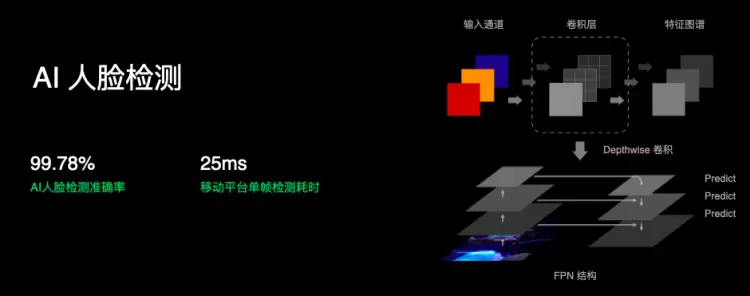 AI人脸检测通过对网络模型的优化,实现99.78%的检测准确率和25ms的单帧检测耗时,不管是拍视频还是拍照,都能快速的检测出人脸区域,为后续脸部优化圈定精确的范围。同时,AI算法在人脸区域标记了296个关键点来实现五官和轮廓细节的区分,并加入关键点是否可见判断、人脸角度判断等辅助信息,最终在业界权威的WFLW数据集上实现低至4.71%的NME,这套算法在移动平台上的运行帧率达到了200fps以上。
