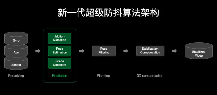 超级防抖算法加入场景检测过程,通过抓取陀螺仪、加速度计和Sensor的数据分别对运动轨迹、姿态和曝光进行判断,从而区分不同场景,匹配不同的防抖策略。