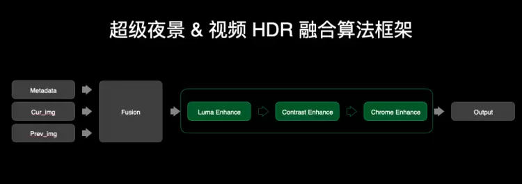 超级夜景视频在前代算法基础上和HDR算法进行融合,针对亮度调整曲线进行区分调试,算法先会根据当前的亮度环境智能判断启用夜景还是HDR亮度调整曲线,实现更通透、观感更好的视频效果。