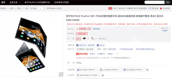 而专注折叠屏并推出全球首款折叠屏手机的柔宇科技,前不久也带来了FlexPai 2新一代5G折叠屏手机,外折叠实现全贴合,正面主屏幕为 5.5 英寸,背面副屏则为 5.4 英寸规格,展开可以变成一块 7.8 英寸 1920*1440 显示屏,足以媲美很多平板电脑,重点是价格仅需9988元,京东12期免息,购机就送100元E卡。