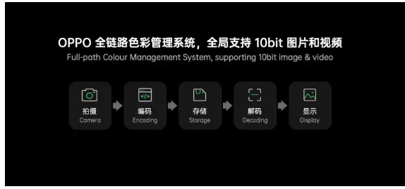屏幕作为用户与手机进行“交流”的重要介质,因此,优秀的屏幕素质往往非常重要,除了常见的分辨率、高刷率以外,色彩管理也是优秀屏幕组成重要的元素之一。而这次,OPPO就在屏幕的色彩表现方面做出了努力,OPPO全链路色彩管理系统包含全链路10bit及色彩管理两大核心技术。而其中全链路10bit覆盖采集、编码、存储、解码、显示整条图像处理过程,在各环节均具备处理10bit数据能力,解决底层系统对于10bit图像信息不兼容问题。而这也是安卓手机行业里首次实现全链路的10bit 图片拍摄。