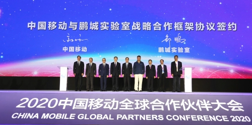 10月20日,在中国移动2020年全球合作伙伴大会期间,中国移动与鹏城实验室举行战略合作框架协议签约及中国移动粤港澳大湾区创新研究院揭牌仪式。广东省副省长王曦,中国移动董事长杨杰、副总经理高同庆,鹏城实验室主任、中国工程院院士高文、常务副主任邹鹏出席成立仪式并揭牌。