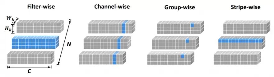 图1 Stripe-Wise Pruning与几种主流Pruning方式的区别