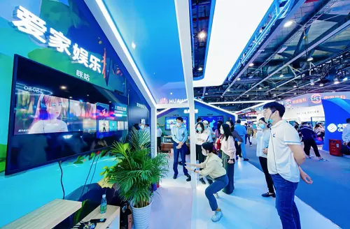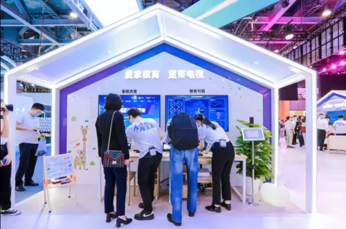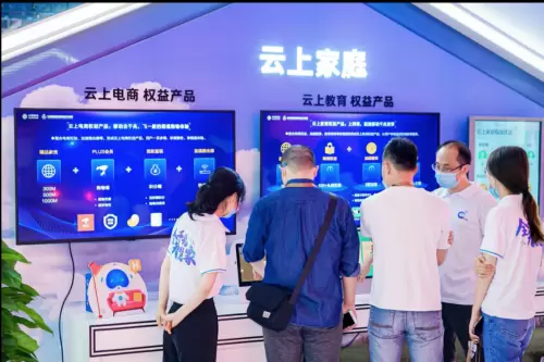 在云上家庭展示区,讲解员为观众讲解了云上电商、云上家庭等权益产品,通过权益、加速服务、智能硬件等融合形式向用户展示高品质场景化宽带体验。