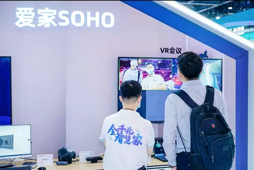 如果你想感受更高效便捷的办公场景,移动爱家SOHO展示区等你体验。展示区配置的专业VR头显将为你带来沉浸式会议体验。在移动千兆宽带和QoS的全方位通信保障下,让你身临其境视频会议。