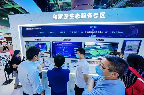聚合伙伴力量,共创生态价值。在和家亲生态服务专区内,中国移动通过和家亲一站式赋能平台为智能家庭终端提供自助式快速接入服务。现场以万物智能、万物安全、万物通信三块大屏的形式,展示中国移动依托和家亲一站式赋能平台,为合作伙伴提供能力支撑,促进商机互通,实现多边市场需求撮合。