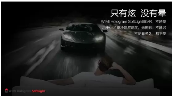 2020年10月,微美全息在深圳推出了全新头戴个人3D影院全息柔光影院,全息柔光影院是目前世界级的个人头盔影院系统,打破人们对于家庭影院的传统概念。早在2011年CES消费展上就有类似的概念产品,在场的观众被这个类似于科幻片的设备所迷住,然而,谁也没有想到微美全息已经正式推出了支持蓝光3D的头戴式设备。
