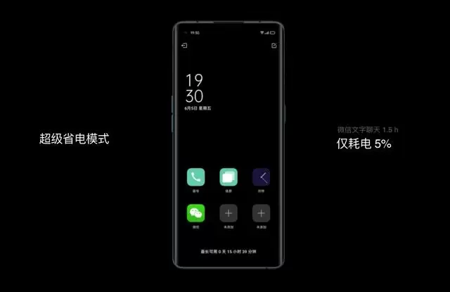 日常使用时,ColorOS 11 通过「全场景智能省电」有效控制系统功耗,帮助用户提升续航;面对 5G 的高能耗,「Smart 5G」技术在保障用户 5G 网络体验的同时,降低功耗延长手机续航;而当手机最终电量只剩 5%,用户也能自主开启 ColorOS 11 的「超级省电模式」,该模式支持用户微信文字持续聊天长达 90 分钟,让用户持久在线。