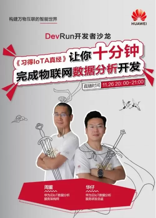 在物联网时代,每天都有数不清的各类物联网设备被连接起来而产生庞大的数据,如果没法及时分析与利用这庞大的物联网设备数据,就无法将数据的价值最大化,那么如何对源源不断采集到的数据进行合适的处理呢?11月26日晚上20:00-21:00,华为DevRun开发者沙龙,华为云IoT专家将亲传IoTA真经,让你十分钟完成物联网数据分析开发。