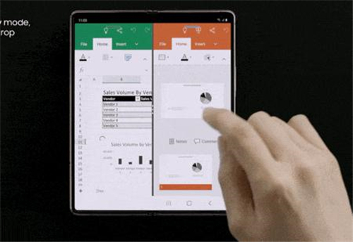 在交互体验方面,三星Galaxy Z Fold2 5G也有非常适合高端商务人士移动办公的设计。比如其内外屏均支持同时运行多个APP并以分割视窗的方式进行交互,并且还可以在各个应用之间拖放文字或是将文件进行跨应用传输,简直就是生产力神器!
