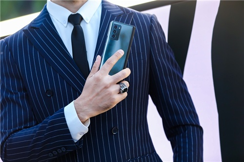 当然,作为一款定位高端的机型,三星Galaxy Z Fold2 5G在外观设计上也符合了高端商务人士的审美,玻璃背板与亮光金属铰链形成了完美搭配,迷雾金和松烟墨两款配色,不论是搭配西装或礼裙,都能够显得高贵轻奢,是各种场合中的加分项。