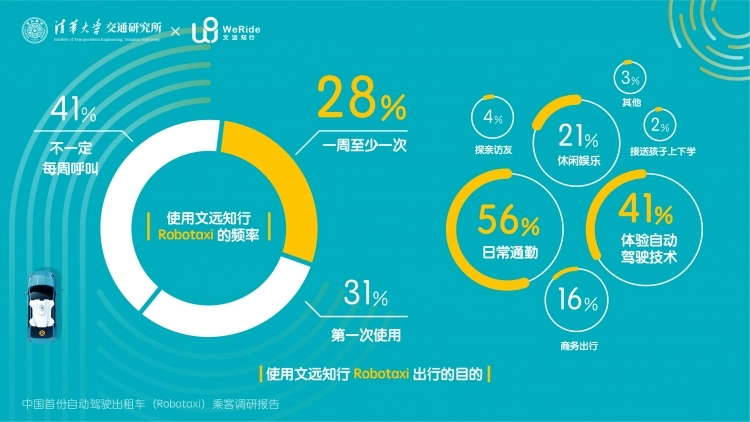 据文远知行联合清华大学交通研究所共同发布的中国首份Robotaxi乘客调研报告显示,运营一年以来,文远知行Robotaxi从传统出行市场赢得一批忠实用户,28%的乘客每周至少乘坐一次,其中15%每周乘坐达到三次及以上。持续的开放运营让Robotaxi在出行市场中赢得一席之地。有近九成乘客呼吁文远知行Robotaxi服务范围拓展到更多区域。