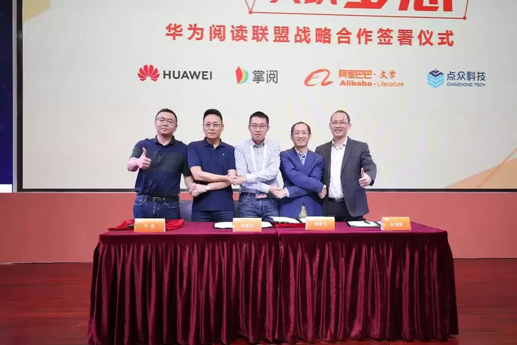 在华为视频&阅读内容联盟合作分论坛,华为与掌阅科技、阿里巴巴文学、北京点众科技共同签署了《华为阅读新客户端合作协议》,就华为阅读客户端技术和运营开展内容合作,共同创建华为阅读联盟。