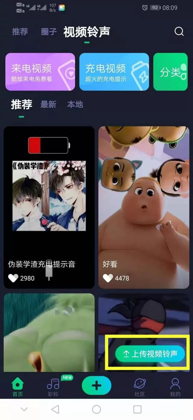 如果你有一天看到一个非常棒的视频片段,可惜视频库里并没有这段视频,这时你就可以把那段视频上传到酷狗铃声的视频库里面,不仅自己能用上心仪的来电视频,而且还可以造福大家,或许还能收获别人的点赞呢!但是并不是所有的视频都能上传,首先不合法的视频肯定是不允许上传的,另外酷狗铃声自己还声明了不支持上传带有水印的视频片段,所以各位作者们在上传视频片段的时候,可要仔细审核哟。