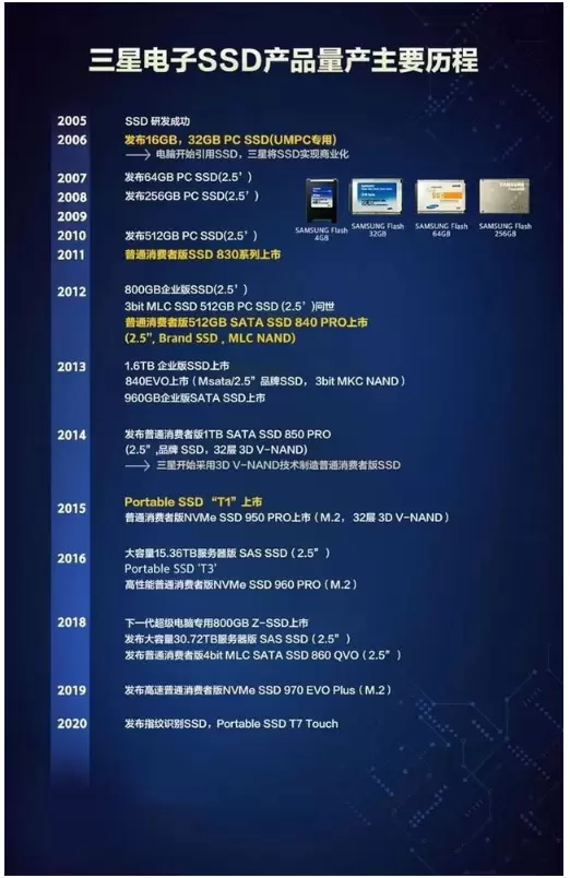 今年4月29日,三星存储产品官方微博发布文章,介绍了三星SSD的发展历程。官方指出,2005年三星SSD研发成功,2006年三星电子实现了SSD商业化,从此进入了SSD的新时代。