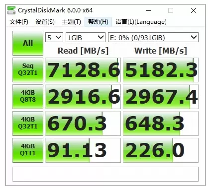 在CrystalDiskMark测试中,三星980PRO的表现更是没让大家失望,最大连续读取性能达到7128.6 MB/s,最大连续写入速度则达到了5182 MB/s,圆满完成标称速度。从这个成绩来看,三星980PRO才算是真正发挥出了PCIe 4.0接口的完整性能。