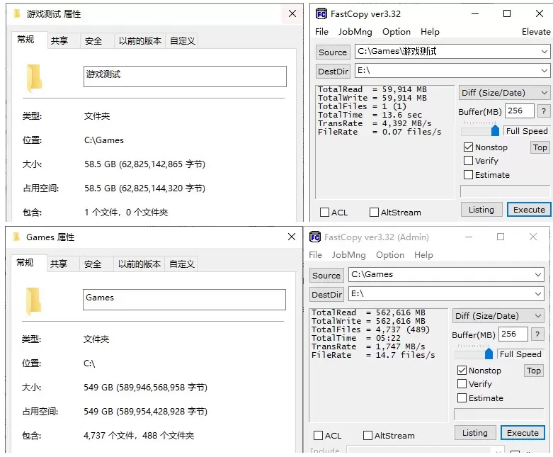 为了更加具有说服力,不如我们再进行一项实际拷贝测试。在这里选择了一个包含4737个文件总容量达到549GB的文件夹以及一个包含一个58.5GB大文件的文件夹进行了检验。