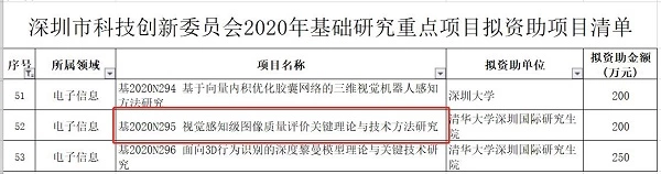 其中清华大学深圳国际研究生院与易诚高科联合申报项目《基2020N295 视觉感知级图像质量评价关键理论与技术方法研究》入选深圳市科技研发新增资助名单。