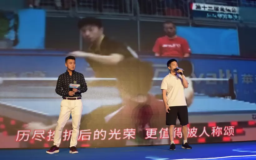 乒乓球世界冠军王皓与樊振东现场演唱《天生较劲》
