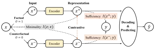 factual和counterfactual的事件分别是和,相对应的表示为和。在此基础上将原有的互信息项拆分,并引入一个超参数,可以得到一个新的考虑counterfactual的信息瓶颈: