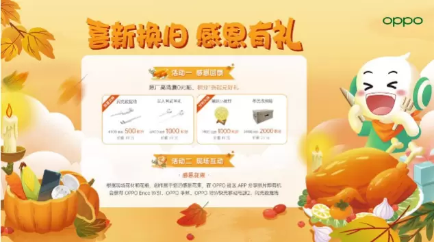 OPPO在11月的会员日推出了权益升级活动,不仅可以免费更换原厂全新附件,还有原厂高清膜0元贴、免50元人工费、保障服务及配件8折优惠等六大权益。贴心的服务,实惠的权益,赢得了用户的一致好评。在感恩节期间,OPPO服务还带来了会员日福利返场,积分换好礼以及丰富的现场互动活动,不仅让用户感受到了OPPO服务的贴心,也让用户与OPPO服务共同度过了一个别开生面的感恩节。