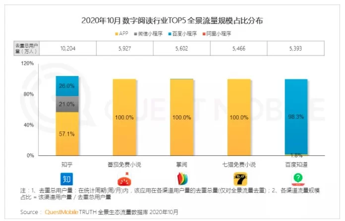QM报告认为,偏问答和知识分享类的应用,天然与百度的信息和知识属性相契合,再结合智能小程序方便快速的特点,从而形成了新的数字阅读行业格局。