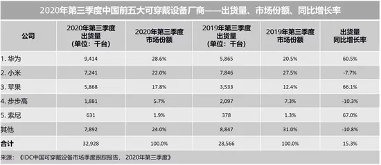 IDC:2020第二季度中国可穿戴设备市场出货量3293万台 同比增15.3%
