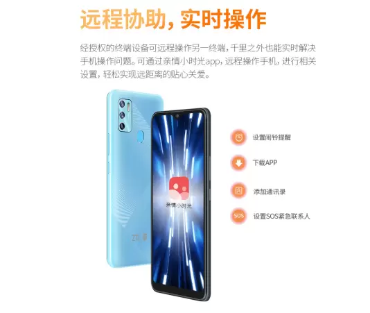 此外,中兴Blade V2021 5G时光机还在优质的基础配置上,增添了诸多人性化功能设置,如远程安装和设置、一键锁定桌面图标等功能,实现智能手机从上手入门到熟练使用的全流程辅助操作。而家庭相册、在线问诊、远程定位、辅助打车、快捷求助等产品功能,则通过对家人的关怀和帮助,在提供更便捷生活服务的同时,为智能手机赋予更多人文价值。