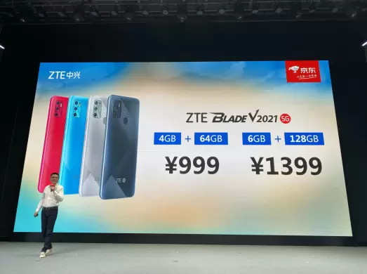 12月2日,2020京东时光机新品发布会在京东总部召开,宣布携手中兴通讯推出全新5G智能手机——中兴Blade V2021 5G时光机,拥有爵士雅灰、轻蓝薄荷、银色闪电三种配色,售价999元起,将于12月3日上午10点在京东商城正式开售。