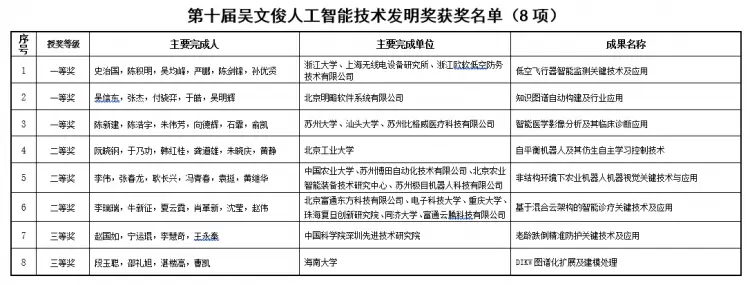 “吴文俊人工智能科学技术奖”是中国智能科学技术领域最高奖。本届吴文俊人工智能科学技术奖,经全国各地方人工智能学会、协会及联盟,各高校及科研(院)所,学会各专业委员会及工作委会,各团体会员(企业)单位和两院院士、学会会士等专家学者的提名推荐,通过对提名项目进行网络评审、会议初评和终评答辩,共有101个成果获奖,其中吴文俊人工智能技术发明一等奖,全国仅3项。
