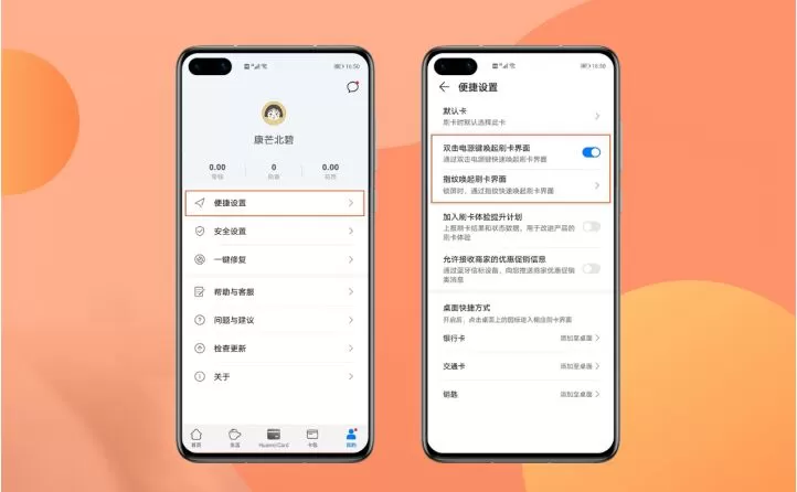 升级至EMUI 11后,华为支付功能实现了“进化”,用户可以在钱包APP中设置专用指纹,专用指纹在锁屏/熄屏状态下被成功识别后,会直接跳转到预先设定好的付款码或对应刷卡界面。这样一来,即使在杂乱的环境下,视障用户也可以通过指纹唤起的方式精准、迅速地完成支付。