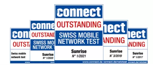 欧洲权威通信刊物Connect联合欧洲权威专业网优咨询服务公司umlaut (原P3 Group)发布的一项最新测试显示:Sunrise拥有瑞士最好的5G网络,提供了最快、最可靠的5G网络。同时,Sunrise是整个欧洲地区中唯一一家连续五次达到“杰出”综合评分的运营商,在多年排名中全部位居第一。