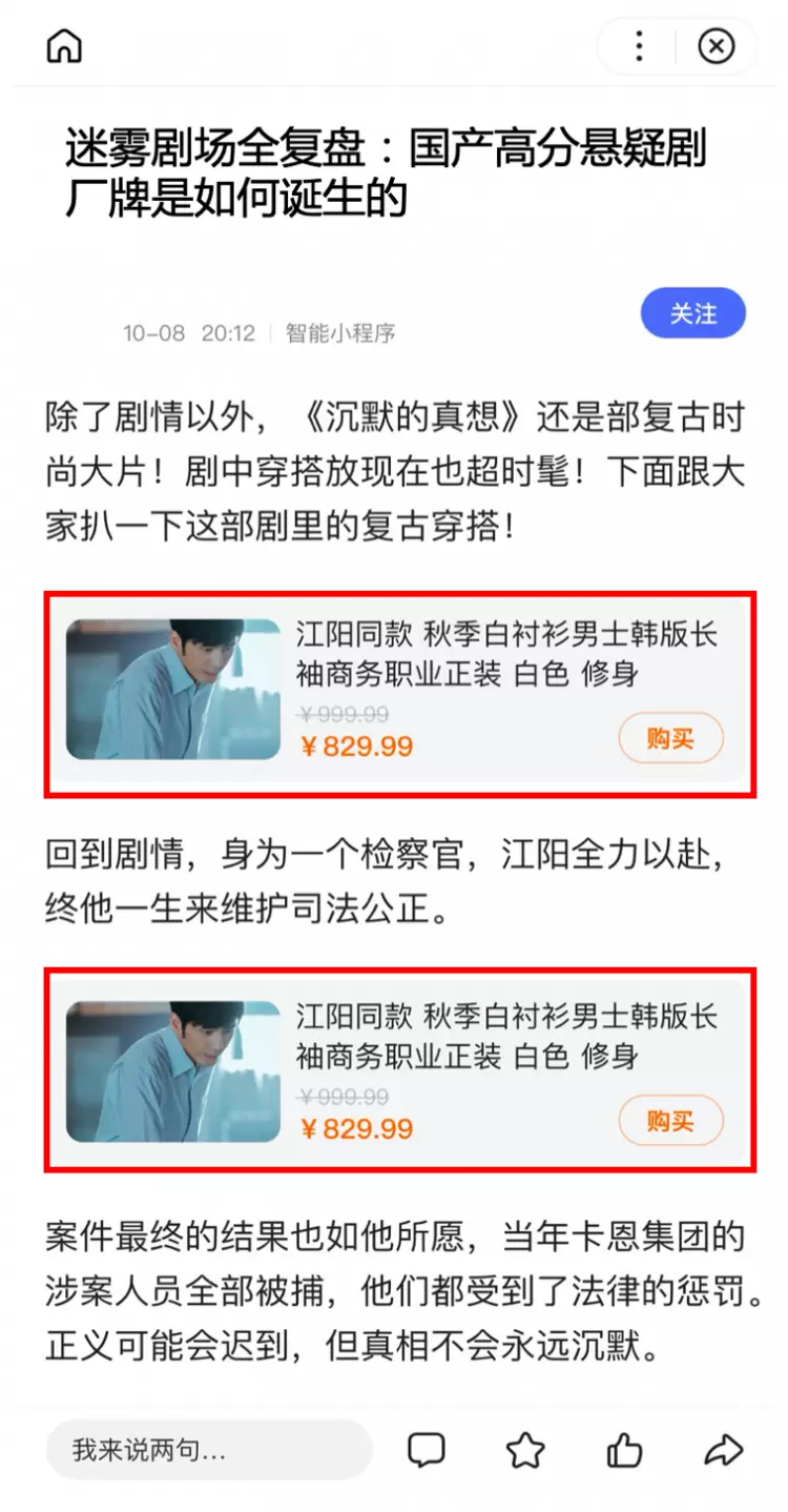 据了解,升级后的长图文内容支持插入小程序卡引导转化,小程序卡支持插入商品、服务组件(客服组件)、文字链接与通用卡片四种类型。不同于以往单纯地为用户提供图文内容,小程序卡让图文内容可以直达小程序,用户在阅读图文内容时,可以通过挂载的链接直接跳转到智能小程序的服务或商品中,二者的打通省去了用户关闭图文再通过其他渠道进入的繁琐步骤,带来了闭环的一站式体验。