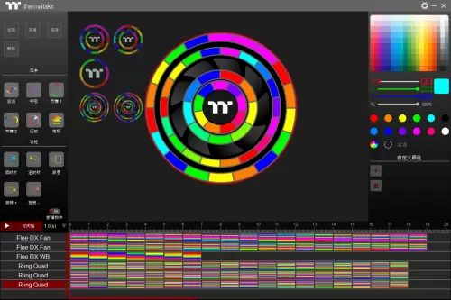 TT一直与玩家保持高度密切的联系,在捕捉到了玩家的需求后,加入了灯控软件的研发大军。且早在2017年就推出了首款灯控软件——TT RGBPLUS软件,使用方式跟市面上的常规灯控软件大致相同。而最新的Neonmaker便是在传统的同步效果上进行了延展,让发光配件之间能够更加实现交流和互动。打开Neonmaker软件,会看到像Pr软件一样的画面轨道,用户可以在这些轨道中加入自己喜欢的灯效模式,并且可以控制每颗发光灯珠,让发光配件能够在不同时间段实现不同的模式。对比起常规灯控软件的一键同步,Neonmaker的客制化程度要强上许多。也正是这种自主化极高的控制模式,让主机能够呈现出一场与众不同的灯光秀。