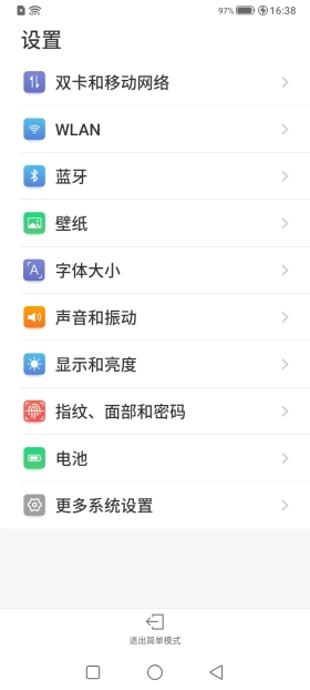 启用“简单模式”后,系统显示图标由一行4个,变为一行3个,图标块变大了将近2倍,同时界面也更加简洁,只保留了常用的应用,很多第三方应用则被隐藏了起来。简洁的不光是界面,系统设置也被大幅精简,也只留下了一些日常需要的设置,更易于老年人日常操作。
