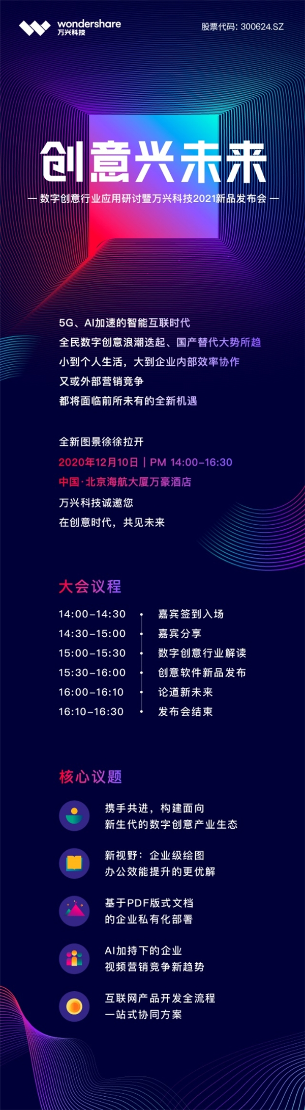 万兴科技2021新品发布会定档12月10日 官方活动页全新上线