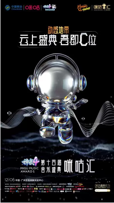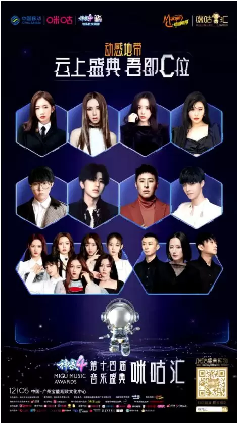 12月5日,云上盛典吾即C位——神武4 ·动感地带第十四届音乐盛典咪咕汇在广州开启。陈立农、重塑雕像的权利、蔡徐坤、G.E.M.邓紫棋、毛不易、孟美岐、潘玮柏、袁娅维、硬糖少女303、张靓颖等大咖新秀集结助阵,点亮星光闪耀的盛典舞台。