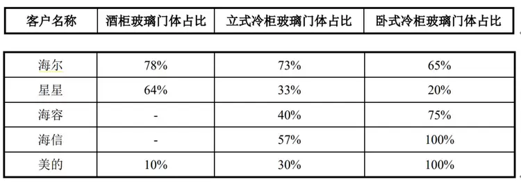 招股说明书显示,2015年,三星新材生产的酒柜玻璃、冷柜玻璃门体占下游主要客户酒柜和冷柜产量的比重已经达到较高比例。