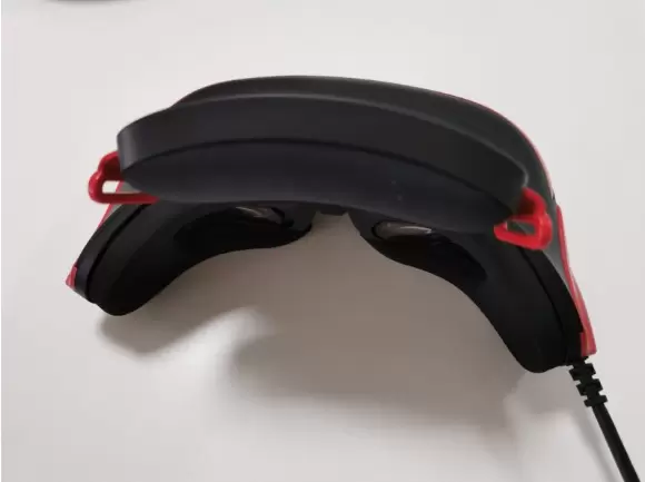 在外观上,头戴影院的头托两侧可以看到各有一个卡槽,这是安装魔术头带时使用的,相当于是采用了一个快拆型的设计,每次进行安装或者拆卸魔术头带时仅需简单地一插一拉即可,操作起来特别简单。机身的内侧部分以及头托的内部各有一个海绵垫,它们都采用了魔术贴可拆卸的方式,在长时间佩戴使用之后可以自行进行拆卸更换。有了这些海绵垫,不仅可以让用户在佩戴时更加地稳固,而且还能够起到一定的吸汗作用。