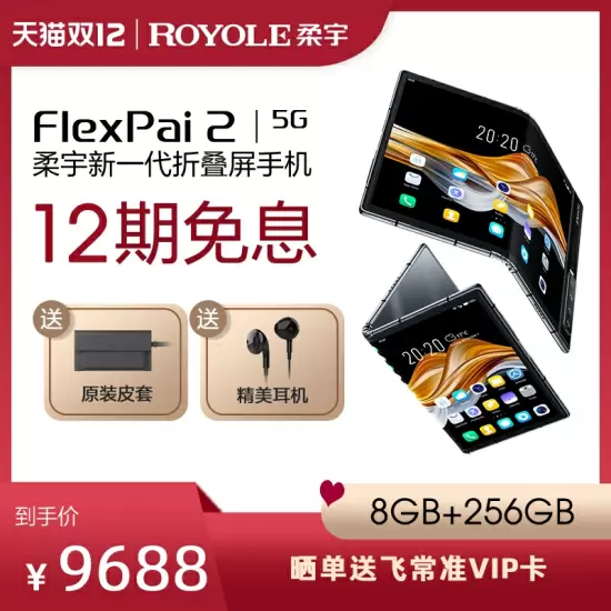 而据官方消息显示,双十二期间(12月10日-12月12日),在京东、天猫旗舰店以及柔宇官网购买FlexPai 2可享12期分期免息,换算下来平均每天仅需不到28元即可拥有。同时,在京东、天猫旗舰店购买FlexPai 28G+256G版本会立减300元(优惠券形式),购买12G+512版本立减500元(优惠券形式),还会额外附赠皮质手机保护套和精美耳机。